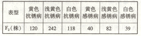 (2) 正反交得到的$\mathrm{F}_{1}$全为浅黄色抗锈病,$\mathrm{F}_{2}$的表型及其株数如表所示。