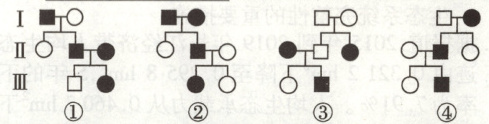 (填序号)。图:四个遗传系谱图,①:Ⅰ代患病男性和正常女性,Ⅱ代正常女性、患病男性、患病女性,Ⅲ代正常男性、患病女性;②:Ⅰ代患病男性和患病女性,Ⅱ代正常女性、患病男性、正常女性,Ⅲ代患病女性;③:Ⅰ代正常男性和正常女性,Ⅱ代患病女性、正常男性、患病女性,Ⅲ代患病男性;④:Ⅰ代正常男性和患病女性,Ⅱ代正常女性、患病男性、正常女性,Ⅲ代患病男性。