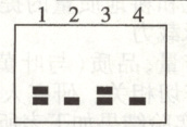 。图:电泳图,1、2、3、4号的电泳条带,1号有两条带,2号有一条带,3号有两条带,4号有一条带。