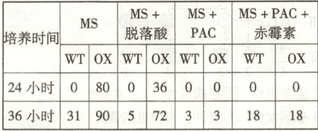 10. 拟南芥的基因 $\mathrm{S}$ 与种子萌发有关。对野生型和基因 $\mathrm{S}$ 过表达株系的种子分别进行不同处理, 处理方式及种子萌发率( $\%$ ) 如表所示, 其中 MS 为基本培养基, WT 为野生型, OX 为基因 $\mathrm{S}$ 过表达株系, PAC 为赤霉素合成抑制剂。下列说法错误的是