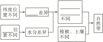 不同$\to$植被、土壤不同$\to$自然带海陆