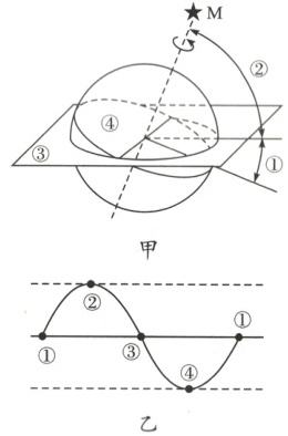 。(4)写出图乙中②③④三个位置代表的日期和三条纬线的含义。
