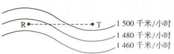 下图是地球表面自转线速度等值线图,R、T 在同一纬线上。据此完成 1~2 题。