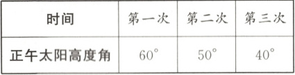 北京($40^{\circ} N$)某中学高中生开展地理课外活动,在连续三个月内三次测量正午太阳高度角,获得下表所示的测量数据。据此完成1~2题。