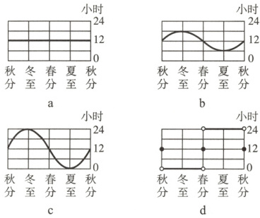 3.D 4.C 解析 第3题,12月22日,太阳直射南回归线,南半球昼长夜短。第4题,在12月22日,如果昼长接近12小时,说明该地接近赤道,纬度较低,最有可能位于热带。