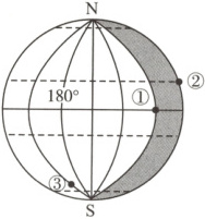 读下图(图中阴影区表示黑夜),完成8~9题。