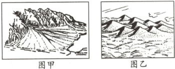 读下面图甲和图乙所示的两种地貌,完成 5~6 题。