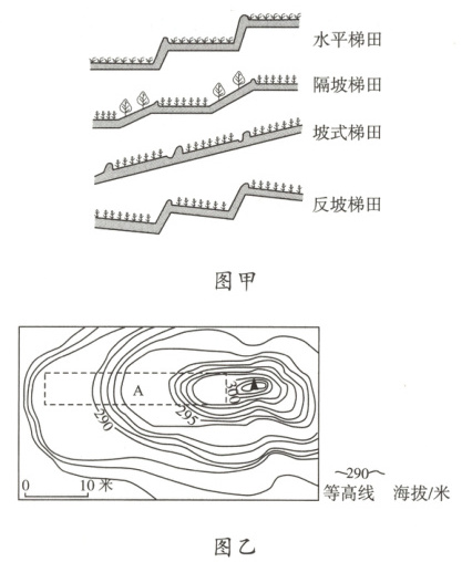 1. 图乙中,A 地区适合修筑的梯田类型是