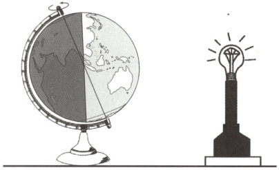 将一盏电灯放在桌子上代表太阳,在电灯旁放置一个地球仪代表地球,拨动地球仪模拟地球运动。读下图,完成1~2题。
