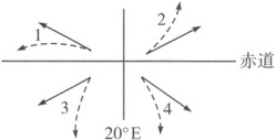(5)题,受地转偏向力影响,物体水平运动方向,北半球向右偏,判断时应面向运动方向。
