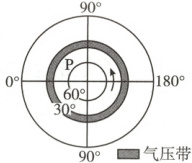 4.B 5.B 解析 第4题,从图中气压带分布的大致位置看,该气压带应为副热带高气压带。第5题,由图中箭头呈逆时针方向可知,图示为北半球,P风带为北半球的西风带,应为西南风,故选B项。