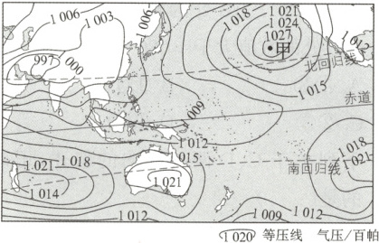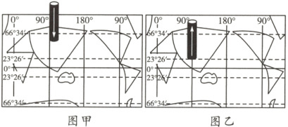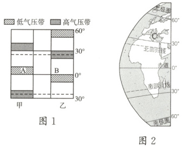 (3)题,与二分日相比,图甲的气压带位置偏北,图乙的气压带位置偏南,这是太阳直射点随季节变化而南北移动的结果。第