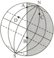 7. 读下面地球光照图(阴影部分表示黑夜),完成下列问题。