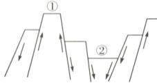 (3)①为地垒,②为地堑。地垒往往发育为山岭或高地;地堑形成谷地或低地。