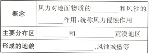 (1)吹蚀 磨蚀 干旱 半干旱 风蚀蘑菇