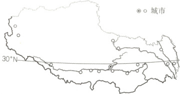 读下面西藏主要城镇分布示意图,完成1~2题。