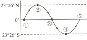 下图是太阳直射点在地球表面的移动示意图。读图,完成(1)~(2)题。