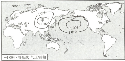 读下面亚欧大陆甲气压中心达到一年中最强盛状态图,完成1~2题。