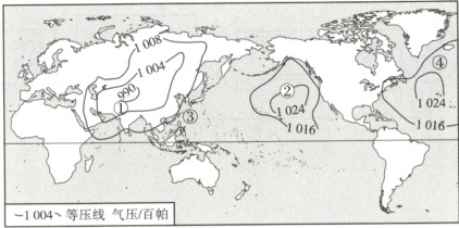 读下面世界部分区域近地面气压分布图,完成3~5题。