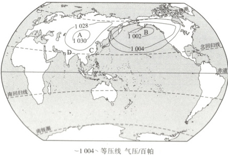 (填“1”或“7”)月气压分布状况。(2) A气压中心的名称是