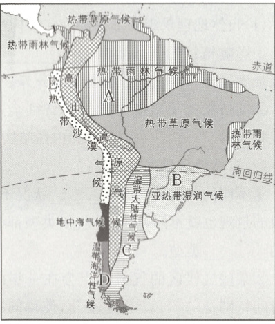 (1)图中A地为热带雨林气候,B地为亚热带湿润气候,影响两地气候类型不同的最主要原因是什么?