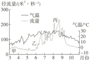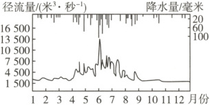 (1)雨水补给。河流的流量随着降水量的变化而变化。