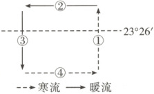 出,①③④是暖流,②是寒流,呈顺时针方向流动,③