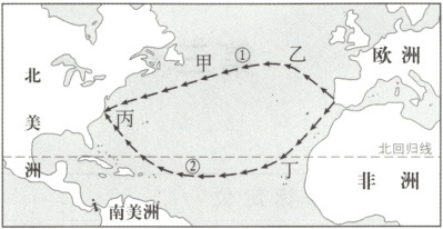7. 读下面北大西洋局部洋流分布图,完成下列问题。