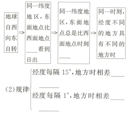 的地方时作为该区的区时。②规律:相邻两个时区的区时相差