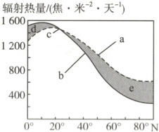 (1)热量收入 从低纬度向高纬度递减 纬度越高接收太阳辐射的热量越少