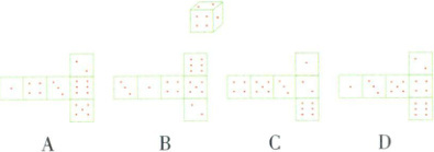 它符合规则:相对两面的点数之和总是7。下面四幅图中可以折成符合规则的骰子的是(