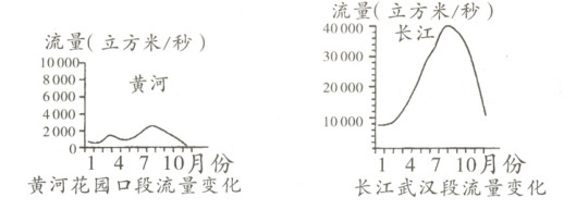 10.B【解析】本题图中呈现的信息是河流流量的变化情况,根据纵坐标径流量的数值可以看出,长江的径流量比黄河大得多。