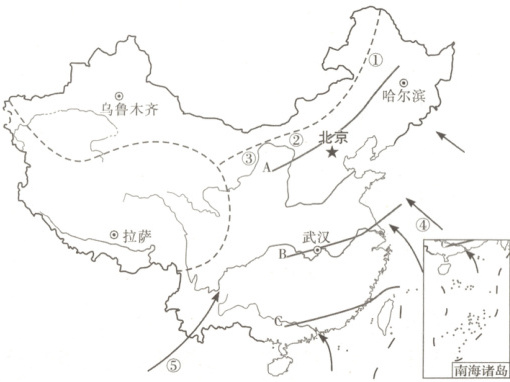 (4)我国是世界季风气候非常显著的国家之一,其主要原因是