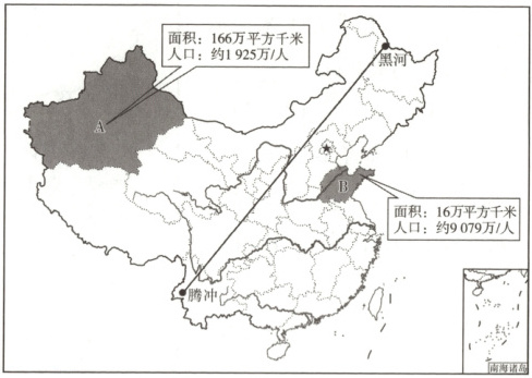 (填字母)。(2)我国人口分布大致以黑河—腾冲一线为界,东南部地区人口