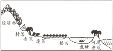 农业是国民经济的基础,农业生产不仅受到自然条件的制约,而且还受到社会经济条件的影响。我国各地自然环境和社会经济条件存在很大差异,每个地区都有发展上的优势和不足,所以农业生产必须因地制宜,合理布局。下图为我国某地区农业生产剖面图,据此回答7~9题。