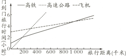 读三种交通运输方式所需时间示意图,完成7~8题。