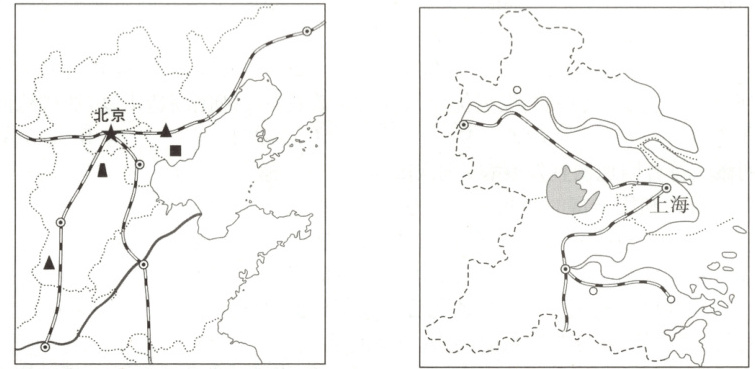 24. (8 分)读京津冀地区和长江三角洲地区示意图,回答下列问题。