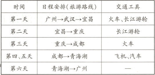 (3)日程安排表上第六天的交通工具被油墨模糊了,如果想以最快的速度到家,只能选择