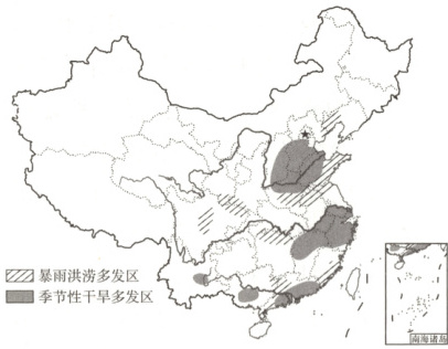 旱灾和洪涝灾害是我国影响范围最广的两大自然灾害。读我国水旱灾害空间分布示意图,完成19~20题。