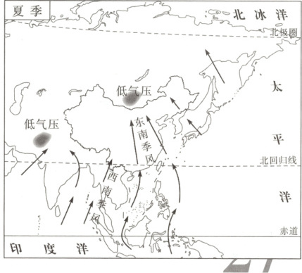 (寒冷干燥/温暖湿润)。(2)受季风的影响,我国降水的时空分布不均。我国东部地区降水主要集中在
