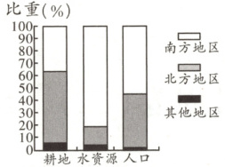 (1)试比较我国耕地、水资源南、北分布的差异。