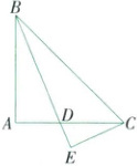 思路分析:延长$BA,CE$,相交于点$F$,结合已知条件得$\triangle BFE\cong\triangle BCE,\triangle ACF\cong\triangle ABD$,得到$EF=CE,CF=BD$,进而求解。