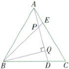 例5 如图,在等边三角形$ABC$中,点$D$,$E$分别在边$BC$,$AC$上,且$AE = CD$,$BE$与$AD$相交于点$P$,$BQ \perp AD$于点$Q$。