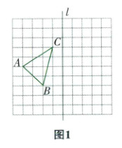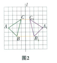 (1)画图如图2,$\triangle A_1B_1C_1$是$\triangle ABC$关于直线$l$的对称图形。