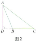 ②如图2,在钝角三角形$ABC$中,$AB = 13$,$AC = 20$,$BC$边上的高$AD = 12$。