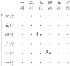 规范解答:因为$A$点的位置为四行三列,表示为$(4,3)$,$B$点的位置为二行四列,所以应表示为$(2,4)$。