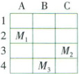 例4 如图是新时代学校平面简图的一部分,其中$M_1$代表仓库,其所在的区域为A2区。$M_2$代表办公楼,$M_3$代表实验楼,试说出办公楼、实验楼所在的区域。