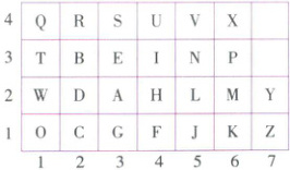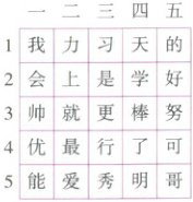 例5 如图所示的方格中有25个汉字,如四1表示天,请沿着以下路径去寻找你的礼物: