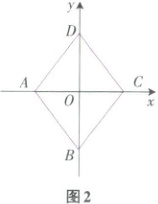 规范解答:本题答案不唯一。如:以对角线的交点为原点,对角线$AC$所在的直线为$x$轴,对角线$BD$所在的直线为$y$轴,建立如图2所示的平面直角坐标系。