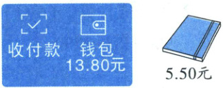 1. 今天,王阿姨帮女儿买了一本笔记本(价格如下),她准备用手机软件的钱包付钱,支付后,王阿姨手机软件的钱包的余额是多少元?(4分)